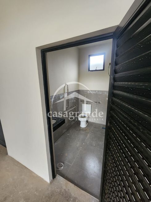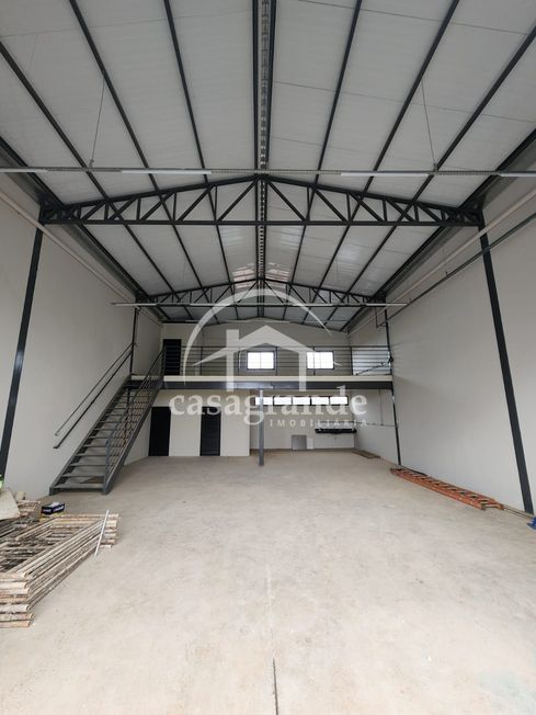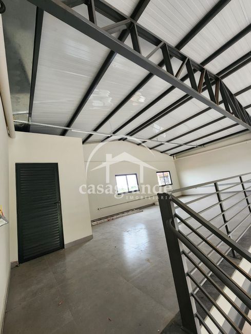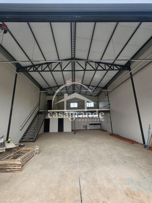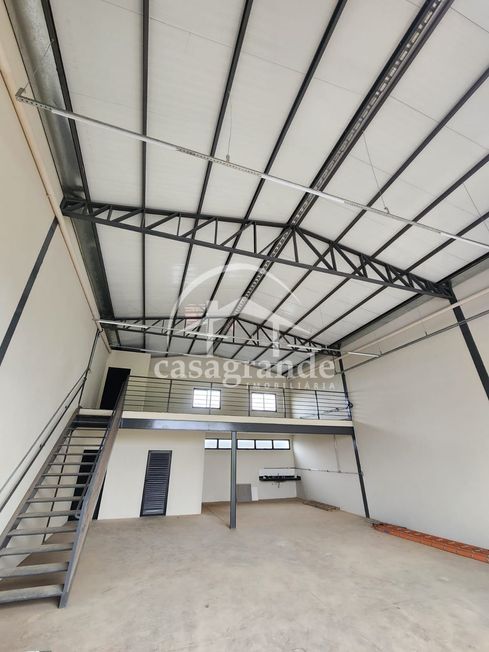 Galpão comercial com área construída de 200 m², sendo 50 m² de mezanino interno com porcelanato, 2 banheiros, copa e depósito, estacionamento frontal, em terreno de 250 m². Piso de concreto reforçado, telhado termoacústico, esquadrias em alumínio e vidro. Próximo ao aeroporto, loja de material de construção.