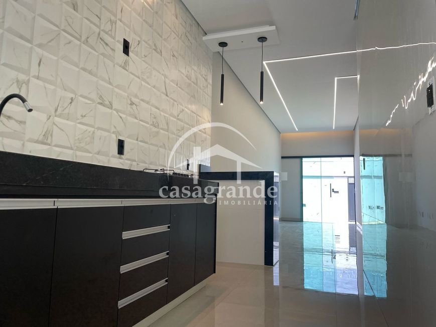 Casa térrea com sala em 2 ambientes, jardim de inverno, 2 quartos, sendo 1 suíte, banheiro social, cozinha americana, área de serviço, 2 vagas de garagem. Piso porcelanato, janelas em alumínio, sanca em gesso, telhas brancas esmaltadas. Área construída de 69 m², área do terreno 125 m². Ótima localização, próximo a posto de combustível, supermercado, lojas e serviços.