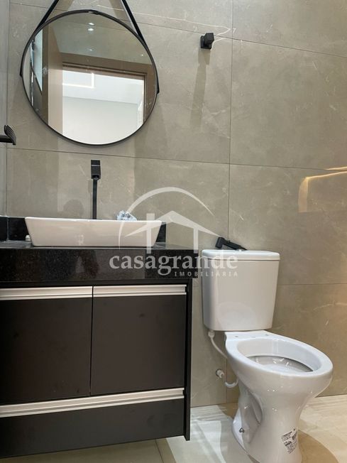 Casa térrea com sala em 2 ambientes, jardim de inverno, 2 quartos, sendo 1 suíte, banheiro social, cozinha americana, área de serviço, 2 vagas de garagem. Piso porcelanato, janelas em alumínio, sanca em gesso, telhas brancas esmaltadas. Área construída de 69 m², área do terreno 125 m². Ótima localização, próximo a posto de combustível, supermercado, lojas e serviços.
