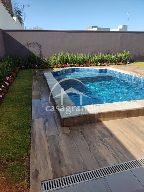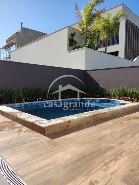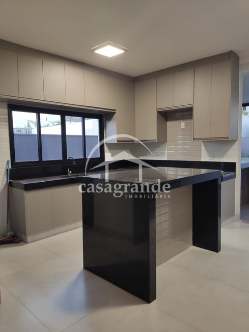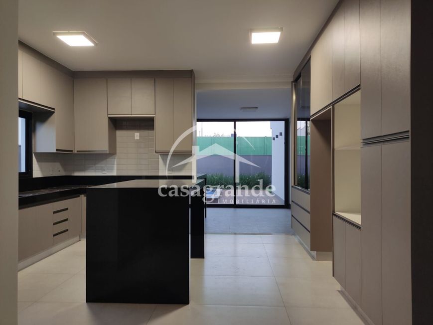 Casa térrea montada com armários, sendo sala em 2 ambientes com pé direito alto, 4 quartos, sendo 4 suítes, sendo a máster com closet, cozinha, área de serviço, despensa com prateleiras em ardósia, área gourmet com churrasqueira revestido, piscina de pastilhas, aquecida e hidro. Casa com aquecedor solar para piscina e chuveiros, toda em porcelanato retificado, rodapé embutido, banheiros com porcelanato até o teto e pias esculpidas, porta de ACM de 4,5 metros de altura, esquadrilhas de alumínio cor preta, 4 vagas de garagem. Área construída de 231,49 m², área do terreno 468,77 m². Condomínio academia, churrasqueira, campo de futebol, piscina, playground, quadra de tênis, quadra poliesportiva e varanda gourmet.