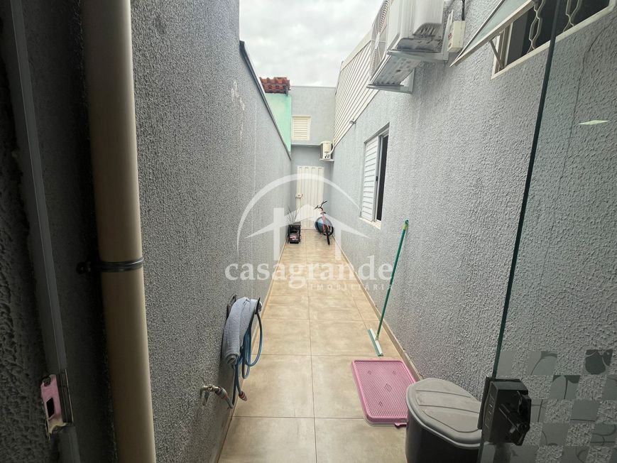 Casa térrea com móveis planejados, sendo sala em 2 ambientes, 3 quartos, sendo 1 suíte, banheiro social, cozinha integrada com área gourmet com churrasqueira, área de serviço e estendal, 3 vagas de garagem sendo 1 coberta. Casa possui placas solares para geração de energia. Área construída de 88 m², área do terreno 145 m². Condomínio com portaria e segurança 24 horas, salão de festas, praças verdes, playground.