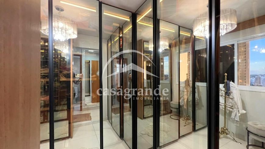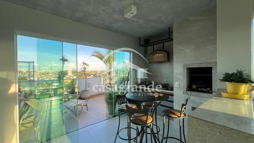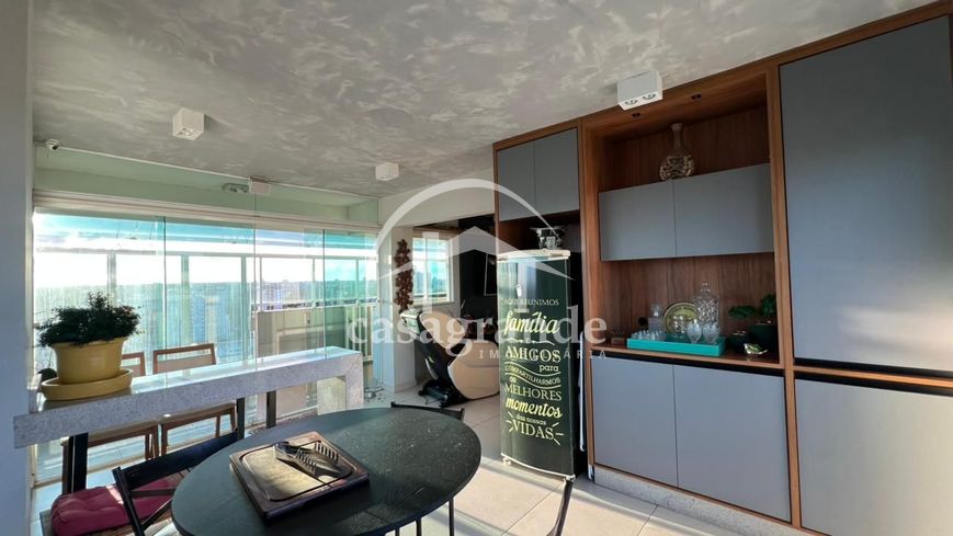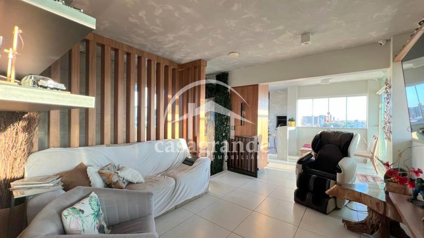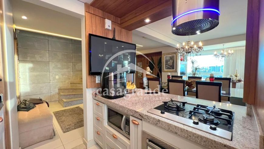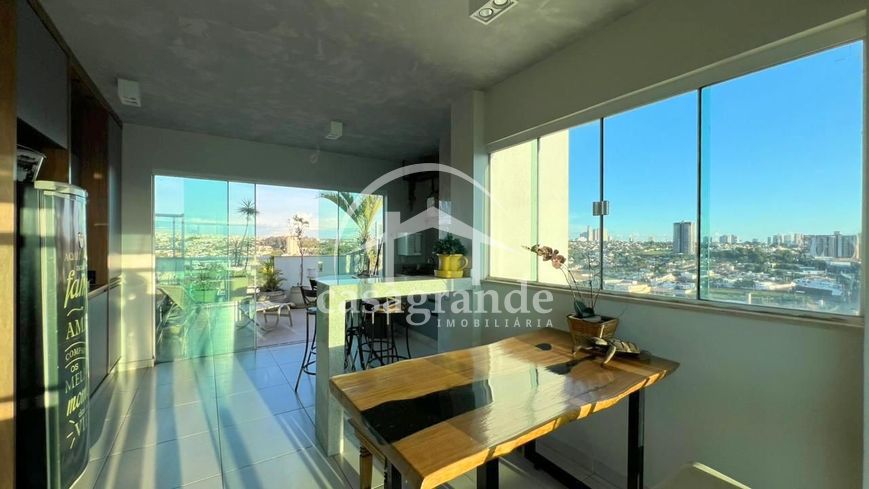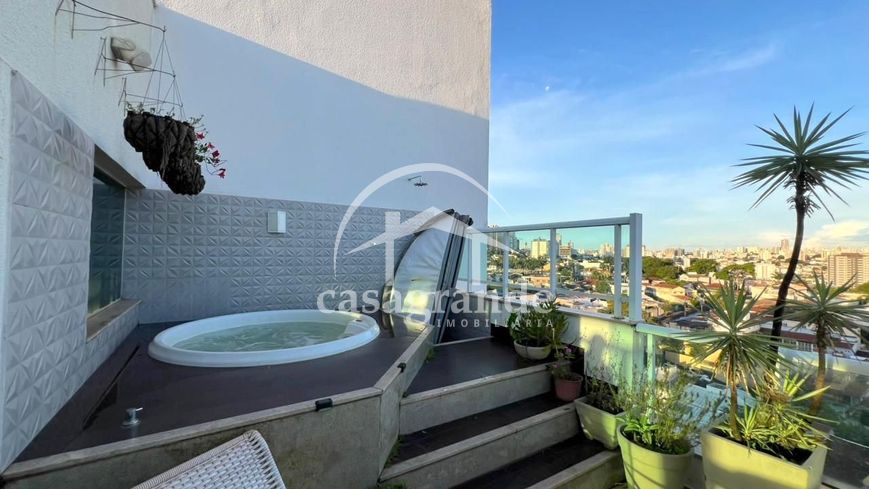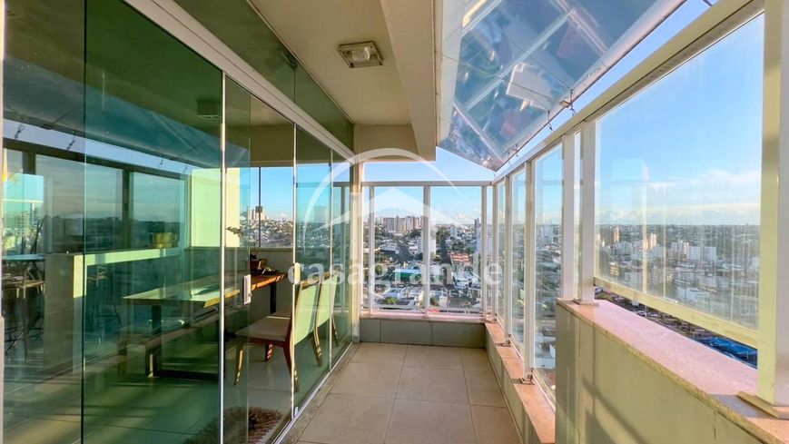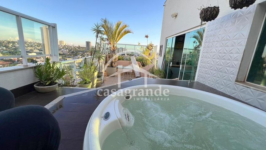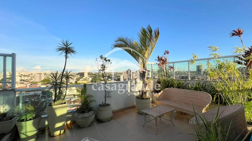 Cobertura em ótima localização, se destaca pela visão panorâmica ampla com vista do nascer ao pôr do sol, transmitido sensação de liberdade, e por ter entre suas paredes de divisa de um lado os elevadores e do outro lado a escadas do prédio, fica assim um isolamento acústico com mais privacidade. Primeiro piso: sala de jantar, sala de estar com sacada integrada, banheiro social, três quartos sendo um suíte e um semi suíte (um dos quartos transformado em closet com possibilidade de reversão) cozinha planejada, área de serviço. Segundo piso: Sala de TV, banheiro (podendo se tornar uma suíte), Espaço gourmet com cozinha, terraço com plantas, deck com spa, hidromassagem e iluminação. Imóvel todo montado com moveis planejados.