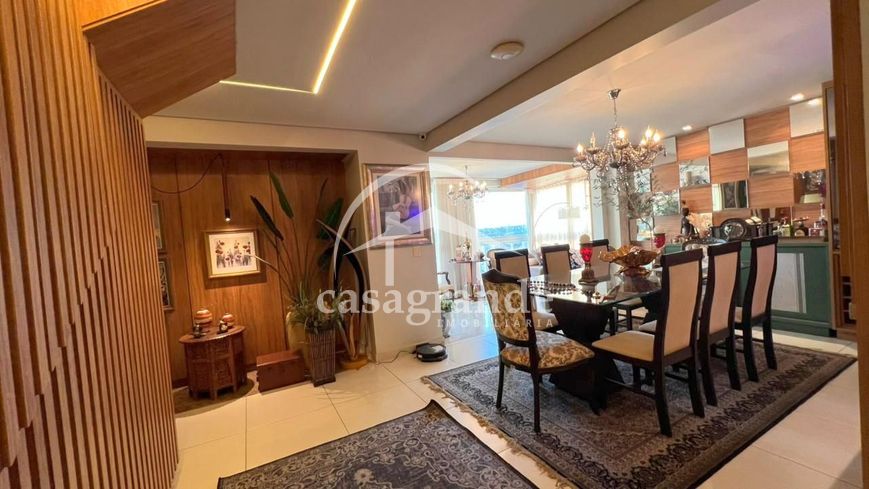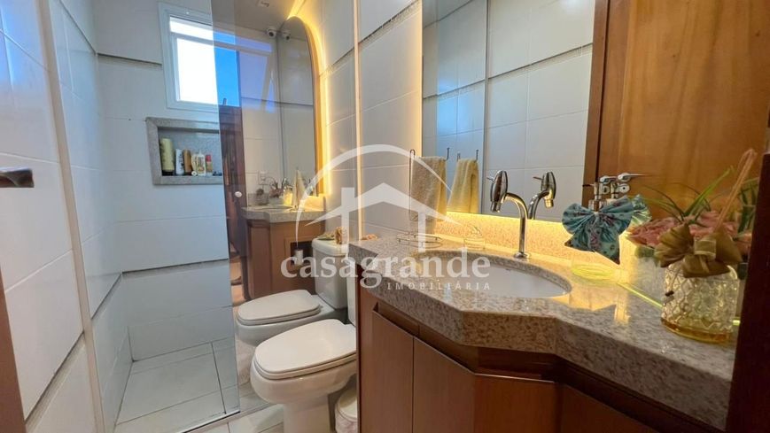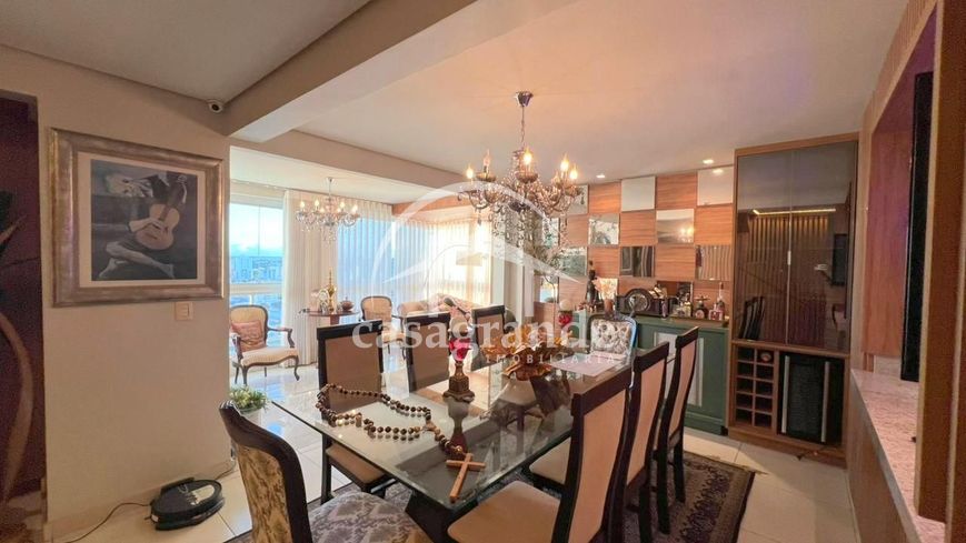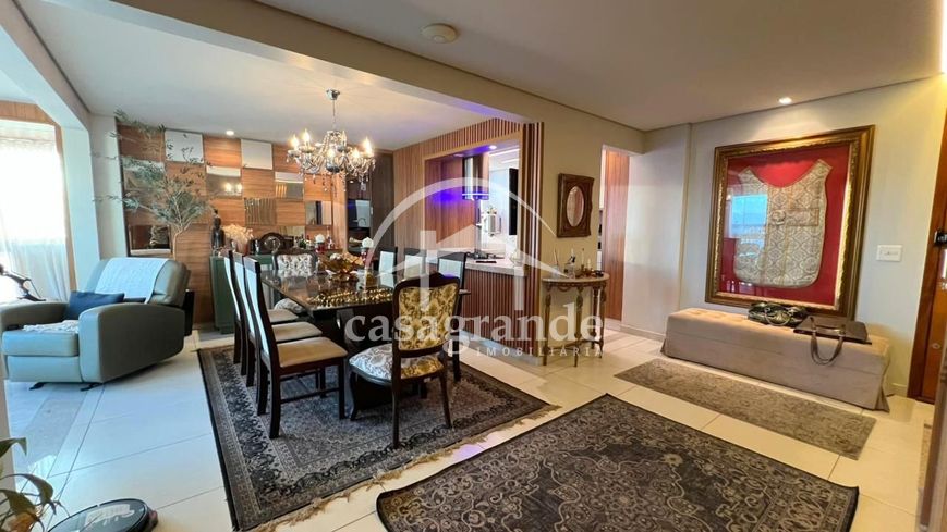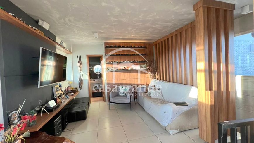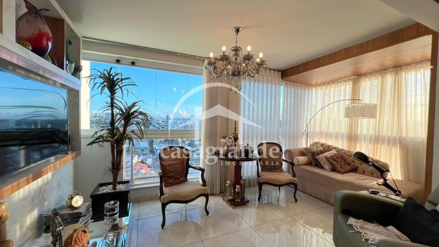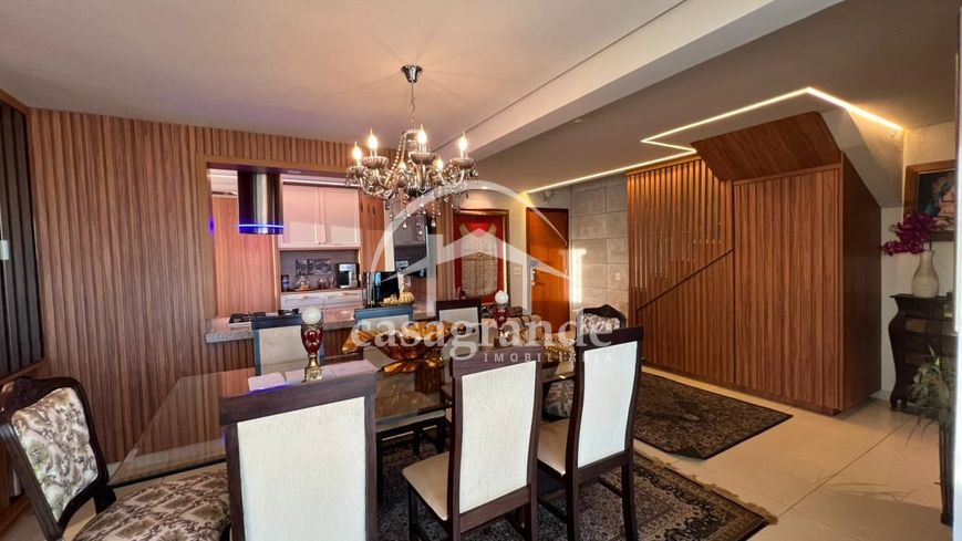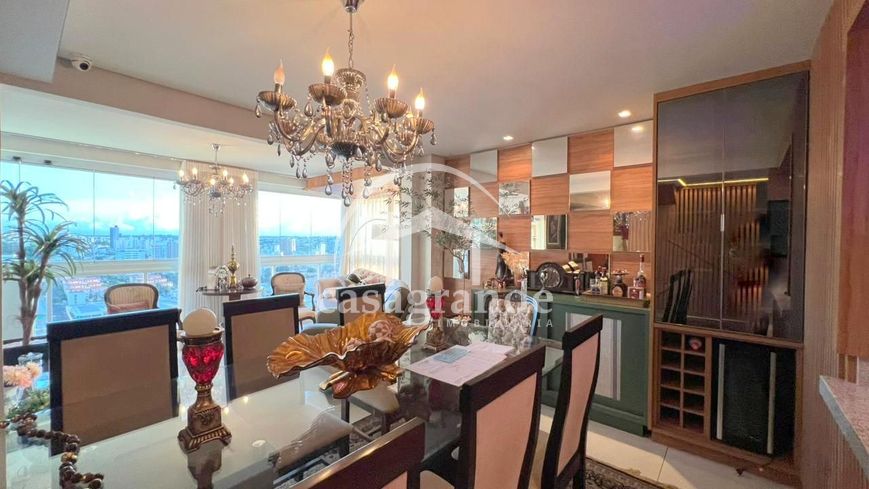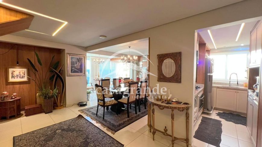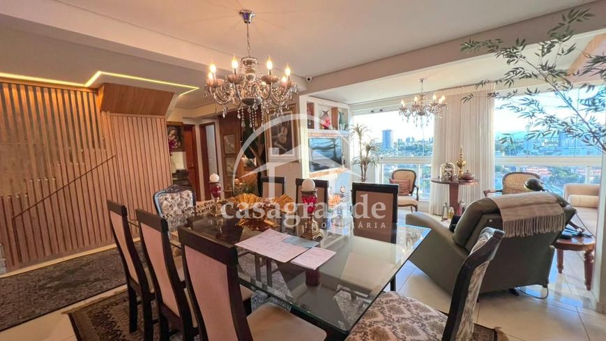 Cobertura em ótima localização, se destaca pela visão panorâmica ampla com vista do nascer ao pôr do sol, transmitido sensação de liberdade, e por ter entre suas paredes de divisa de um lado os elevadores e do outro lado a escadas do prédio, fica assim um isolamento acústico com mais privacidade. Primeiro piso: sala de jantar, sala de estar com sacada integrada, banheiro social, três quartos sendo um suíte e um semi suíte (um dos quartos transformado em closet com possibilidade de reversão) cozinha planejada, área de serviço. Segundo piso: Sala de TV, banheiro (podendo se tornar uma suíte), Espaço gourmet com cozinha, terraço com plantas, deck com spa, hidromassagem e iluminação. Imóvel todo montado com moveis planejados.