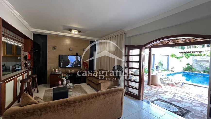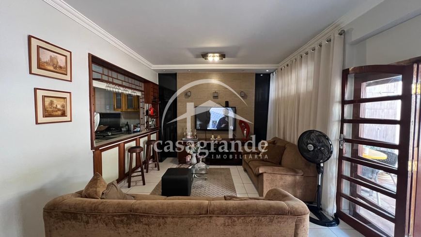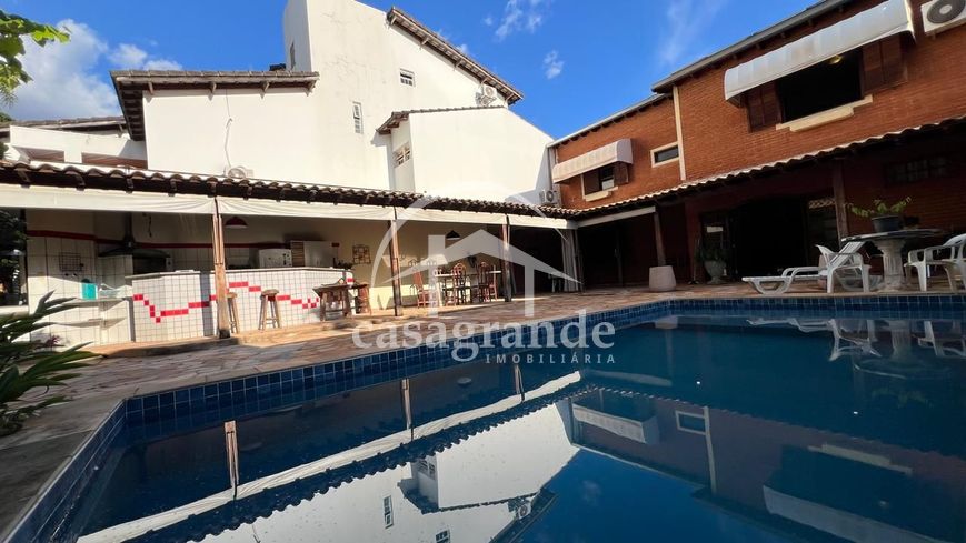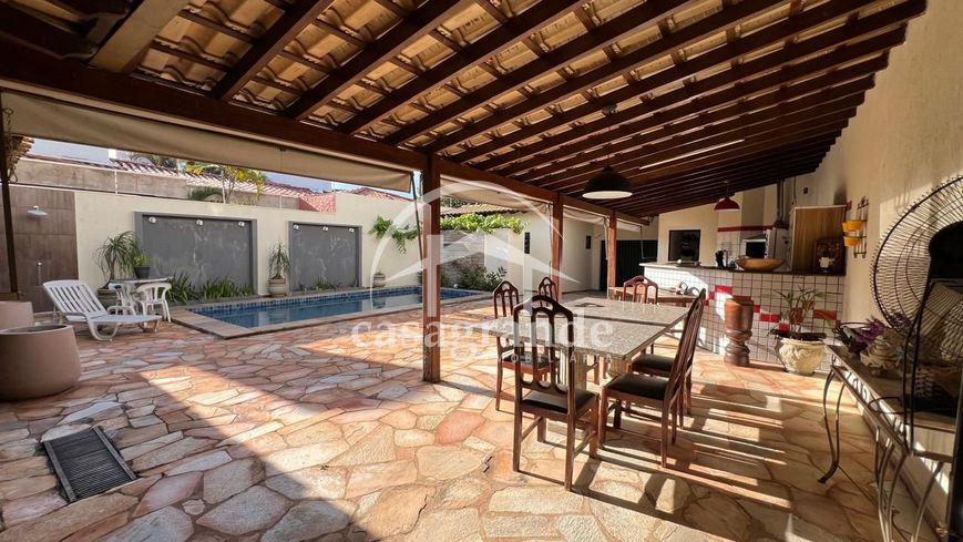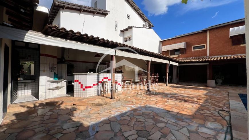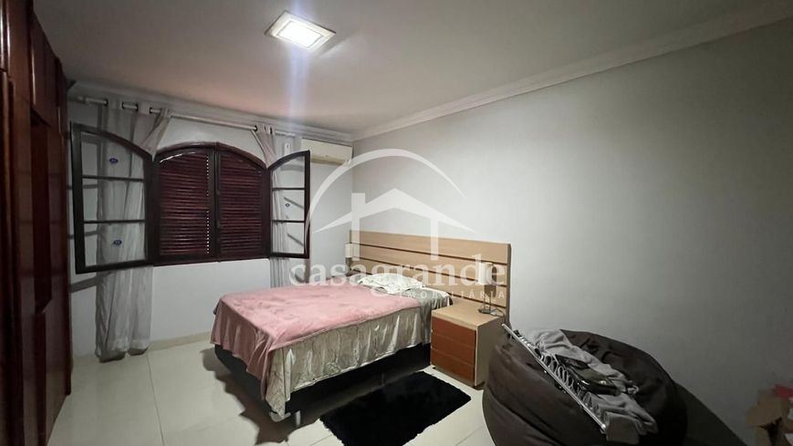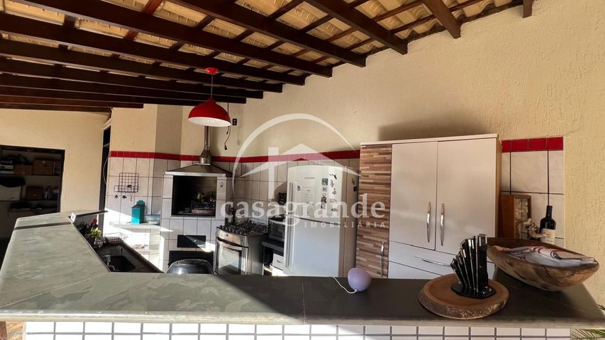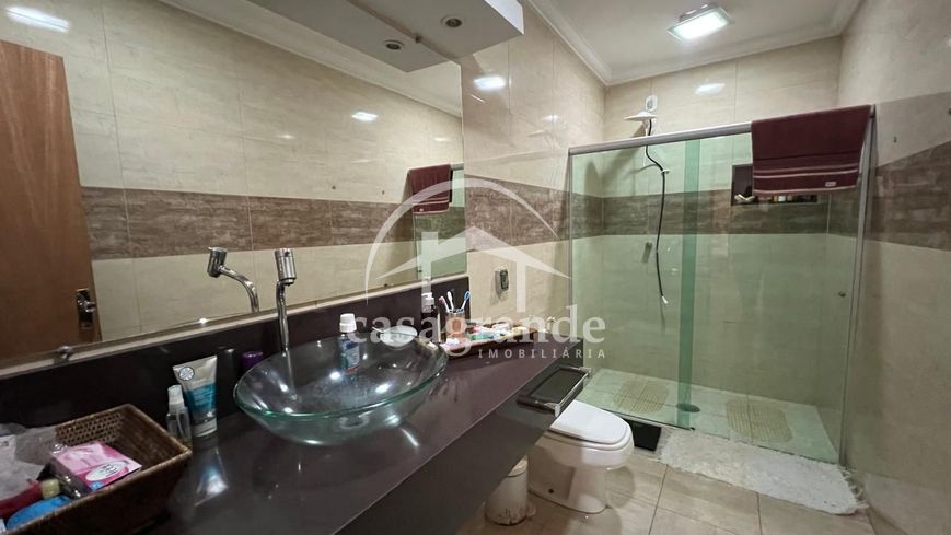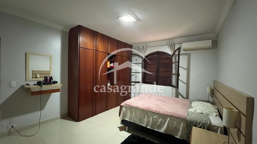 Casa em 2 pavimentos - 1º piso: sala de TV, sala de jantar, 01 quarto com armario embutido, cabeceira e criado, ar condicionado, cozinha estilo americana com armários, depósito. 2º piso: 02 quartos com guarda roupas, sendo 01 com closet e ar condicionado e 01 com escrivaninha, ventilador de teto, banheiro social. Área de lazer: varandas, espaço gourmet com balcão, bancadas em granito, churrasqueira a carvão, pia, armários debaixo da pia, despensa, área de serviço, um cômodo, prisicna com cascara, ducha. 04 vagas de garagem, sendo 02 cobertas. Área construída: 239,49m² e área de terreno 368,40m².