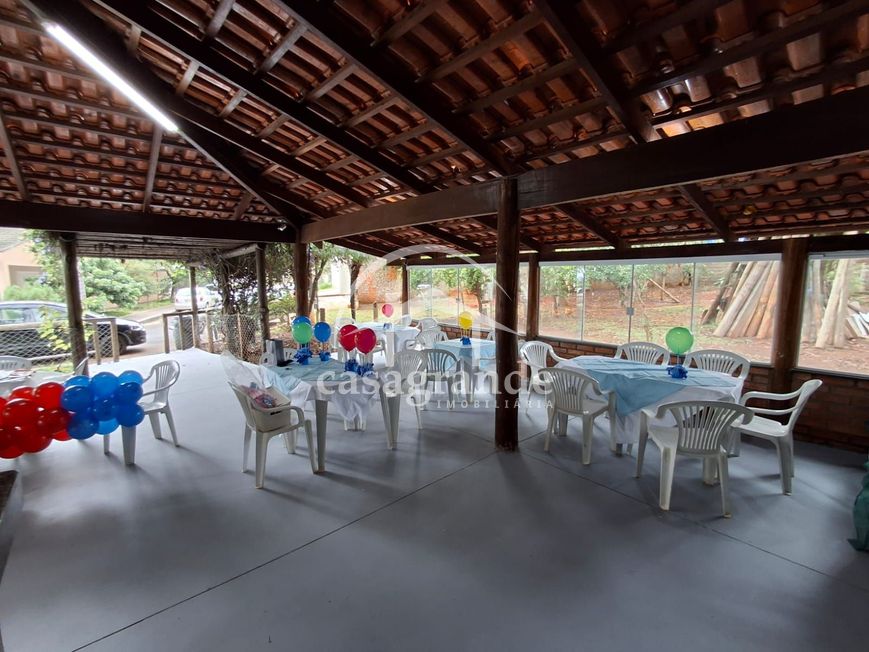 Casa em condomínio tipo sobrado, com sala ampla, lavabo, três quartos sendo um suíte, banheiro social, cozinha com armario sobre a pia, quintal pequeno, duas vagas de garagem, Condominio disponabiliza, portaria 24 horas, salão de festas com churasqueira a carvao, mini mercado, parque com brinquedos, e quadra de futebol
