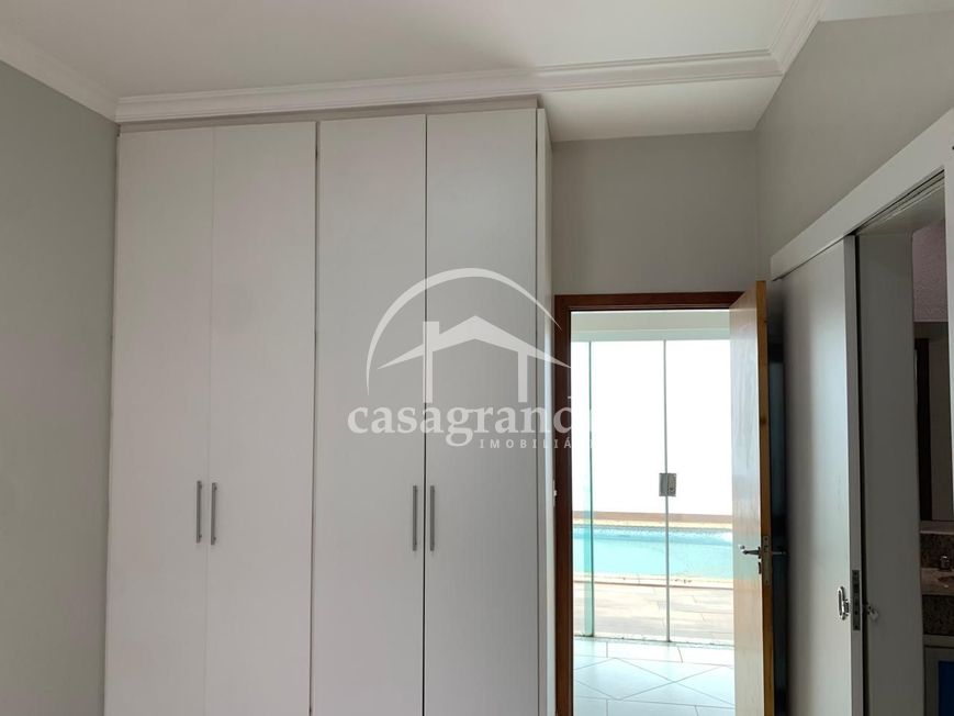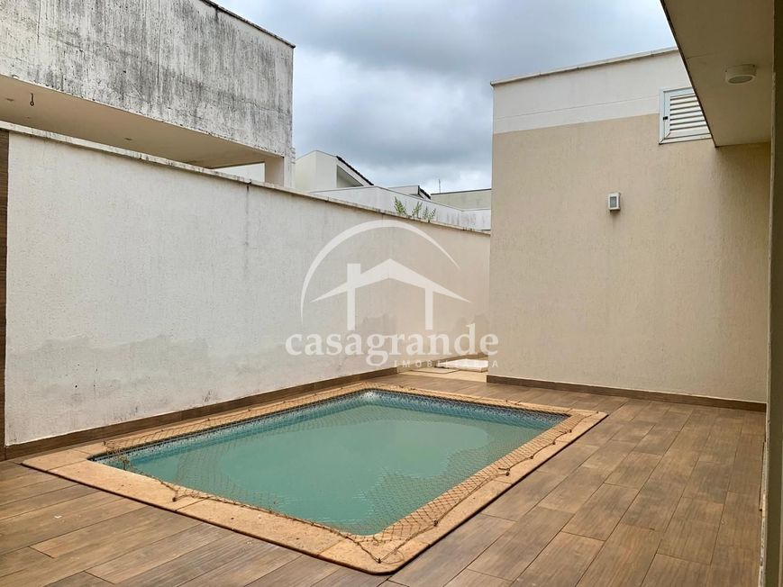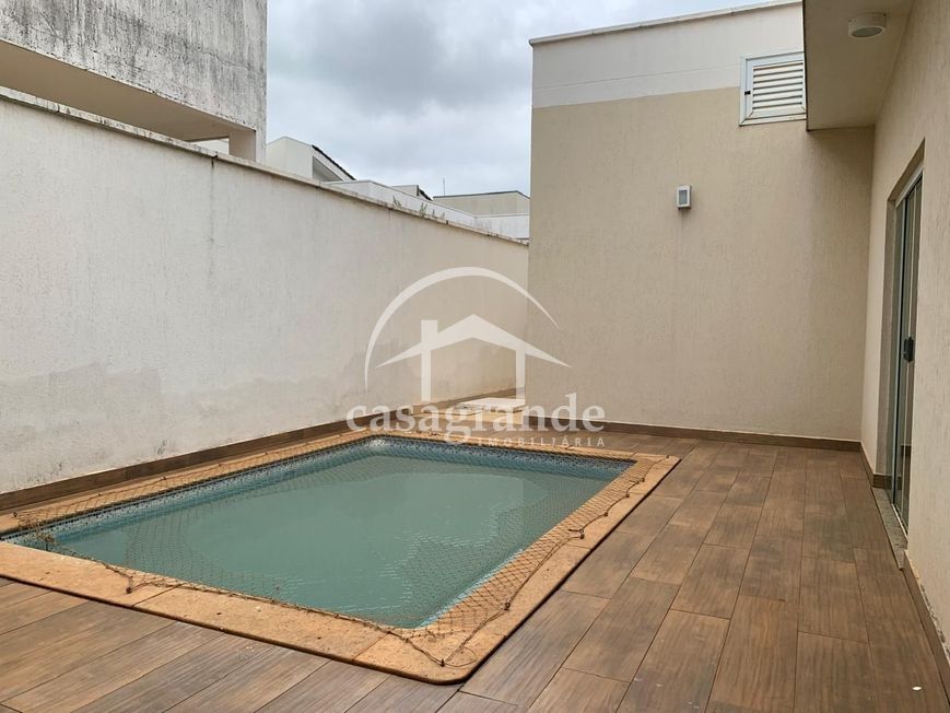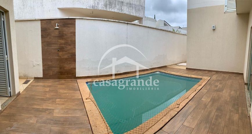 Excelente casa térrea com 195m² em condomínio fechado com toda infraestrutura de segurança e lazer com sala ampla em 2 ambientes, jardim de inverno, escritório com armário e mesa de vidro, lavabo, 3 quartos com armários sendo 1 suíte com banheira de hidromassagem e 2 quartos semi suítes, cozinha planejada com armários, área de serviços com acesso lateral para garagem, espaço gourmet com churrasqueira, bancada com armários e pia, piscina, banheiro externo, ducha e garagem coberta para 2 carros.