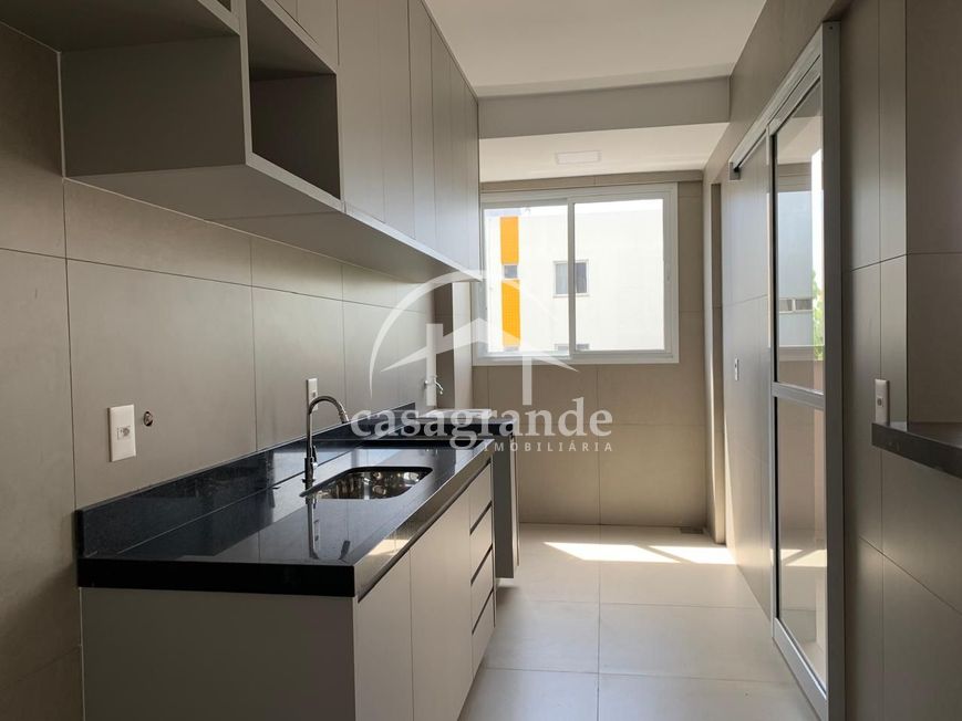 Apartamento novo com 67m², piso em porcelanato, sala em 2 ambientes com sacada, cozinha tipo Americana planejada, 2 quartos sendo 1 suíte, banheiro social e 2 vagas de garagem. Apartamento com armários planejados. Condomínio com elevador, agua e gás canalizado.