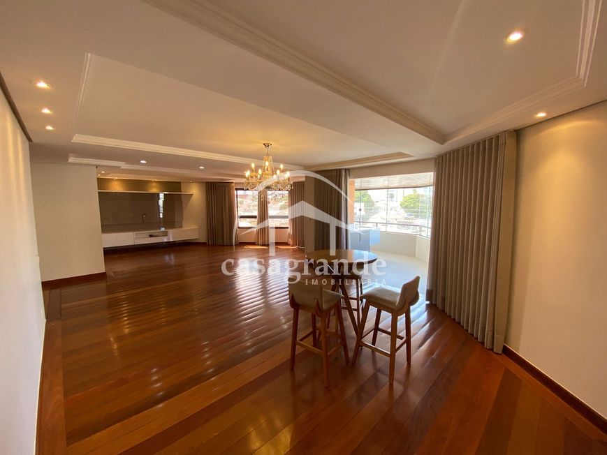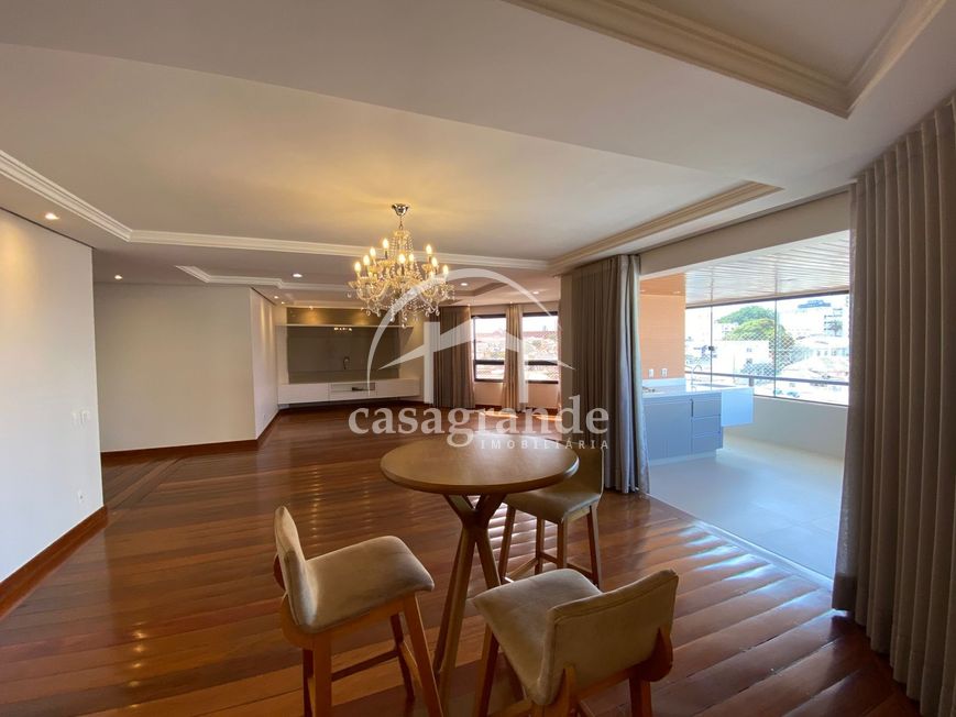 Oportunidade de apartamento com mais de 280m² no Centro de Uberlândia! Este excelente imóvel possui hall social e de serviço privativos, sala ampla em 02 ambientes com painel e completo em cortinas, sacada ampla com churrasqueira à gas e bela vista da cidade. Sala de jantar, cozinha planejada completa, lavanderia com despensa, escritório e banheiro. Espaço íntimo com 04 quartos com armários, sendo 02 suítes, uma delas master com closet, ar condicionado e banheira de hidromassagem. Condomínio com piscina adulto e infantil, salão festas, portaria 24h, elevador. 03 vagas para veículos. Entre em contato conosco para mais informações!
