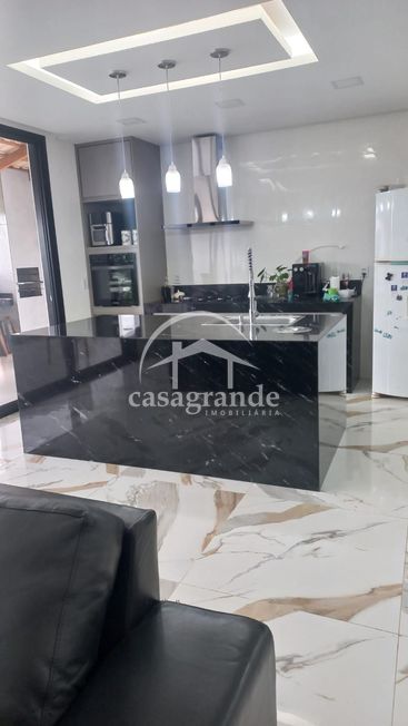 Excelente casa sobrado alto padrão sendo 1° piso: Sala ampla em 2 ambientes integrada com cozinha e área gourmet, banheiro social, varanda colonial com vista para o jardim. 2° piso: 3 quartos suítes sendo 1 master ampla com persiana automatizada, closet, sacada, banheiro com duas cubas, hidromassagem e cromoterapia, 2 semi-suites com persiana automatizadas e manual em alumínio. Casa toda montada com armários planejados, sistema de iluminação, energia fotovoltaica instalada com energia de saldo, esquadrilhas em alumínio em todos os ambientes e garagem para 4 carros.